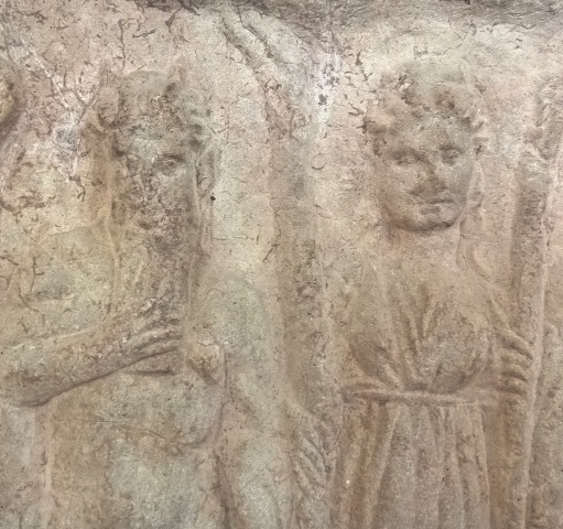 Let's see Hekate as a crone. Oh, it doesn't look like a crone at all! Maybe She is not Hekate, right? But it is written on the marble! We see God Pan and the Goddess Hekate next to him in an initiation scene. Oh did I write initiation? Some people believe that Hekate had no connection with magick. Really? What is She doing at the center of an initiation scene? The votive relief we see comes from Boetia. It is made from limestone. It is dated 350-325 b.C.